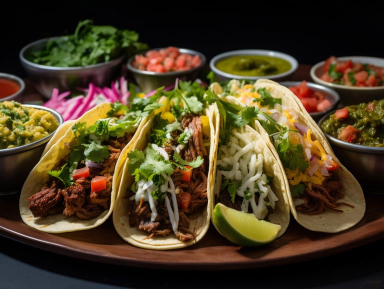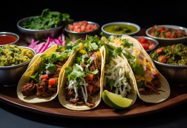 Knusprige Tacos mit hausgemachten Salsas und frischen Zutaten.